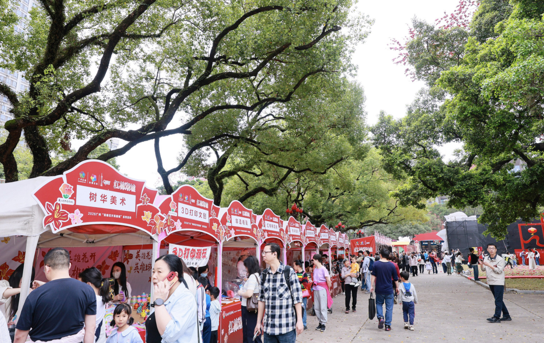 潮墟现场设置红色邮局、青少年红色文创展示区、手作体验区、非遗展示展销以及打卡互动装置,百余款“红棉文创”新品集中亮相。“英雄花开英雄城”纪念邮折、红棉徽章、定制文创套装等创意产品,将木棉元素、红色文化与现代设计理念有机融合,让红色文化可触可感、可戴可藏,真正走进百姓生活。一枚徽章、一本邮折,既是纪念品,更是精神载体,让市民游客在带走文创的同时,也带走一份英雄精神的印记。