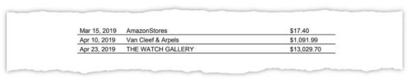 台湾“法轮功”学员苏静女士的信用卡对账单显示数万美元的商品消费。 图源:《纽约时报》
