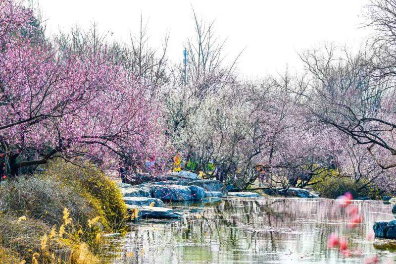 春风送暖,伴着山桃花盛放,国家植物园第四届桃花观赏季暨世界名花展于3月21日正式拉开帷幕。位于曹雪芹纪念馆西侧的山桃花溪已进入最佳观赏期,远望青山环抱,眼前叠水潺潺,近百株山桃花沿水怒放,粉白相间、尽展芳颜。除山桃花外,目前园区内的梅花、望春玉兰、迎春花等已进入观赏期,南湖周边、梅园、木兰观赏区、低温温室周边都是赏花的理想场所。