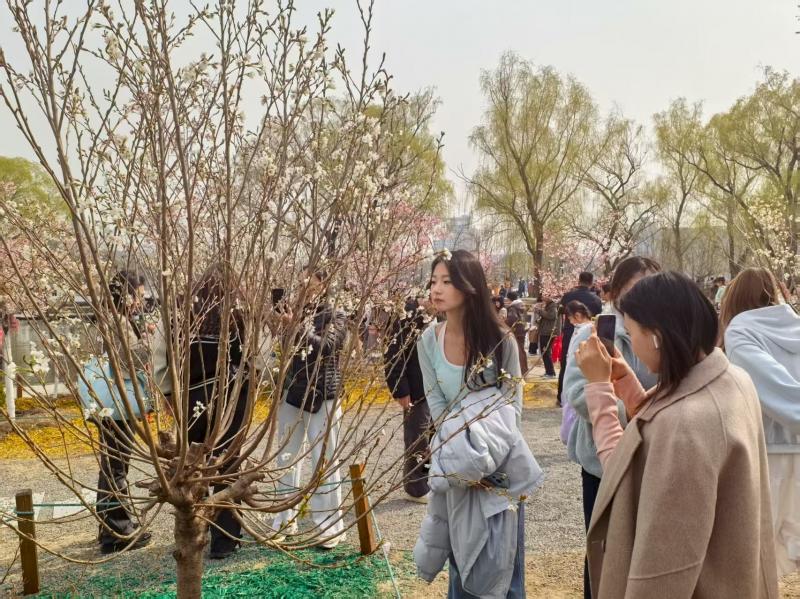 玉渊潭公园的“香妃樱”和“樱小北”周末火出圈,一大早,樱花大草坪的樱花树下就热闹非凡。今年公园精心培育展出的百余盆樱花中,“自带体香”的香妃樱成为头号明星,它清甜的花香吸引游客纷纷打卡拍照。游客刘女士兴奋地说:“以往都是观赏樱花,今年还能闻香识花,真是太特别了。”